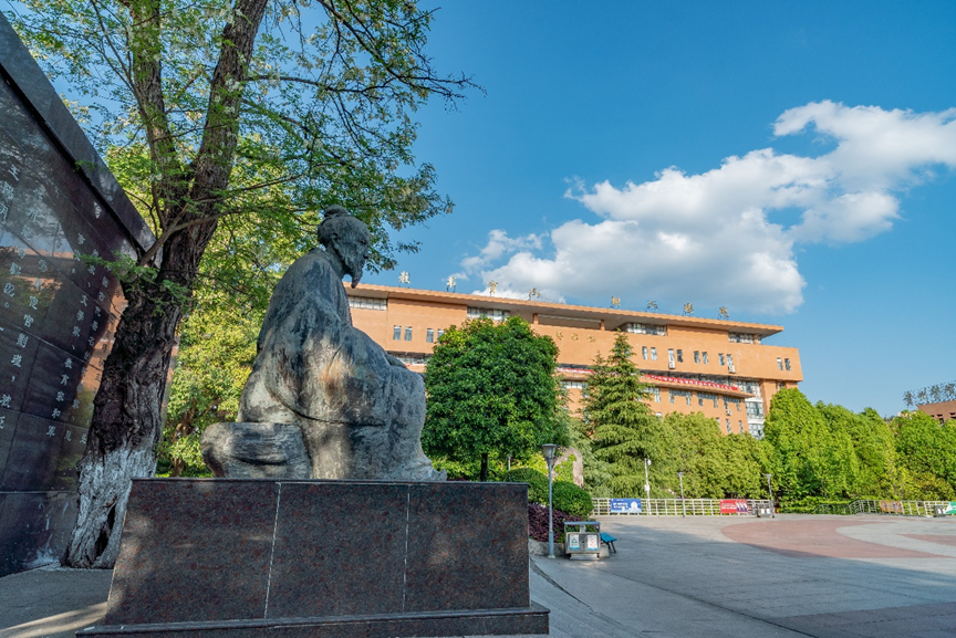 贵阳学院中轴线上的阳明文化广场和王阳明坐像